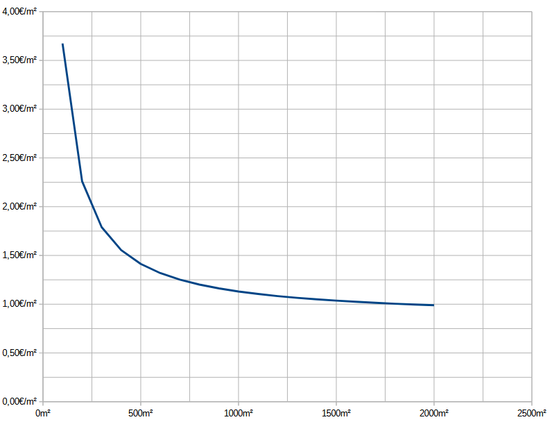 Calcule la superficie de la obra a calcular, contabilizando la cimentación como una planta más. A partir de la superficie, siguiendo el gráfico, puede conocer el precio por metro cuadrado de nuestros trabajos de cálculo de estructuras.